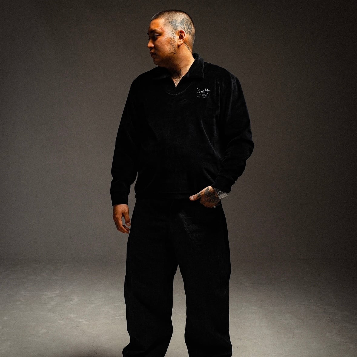上品な光沢感を持つベロア素材を使用したロングスリーブTシャツ。