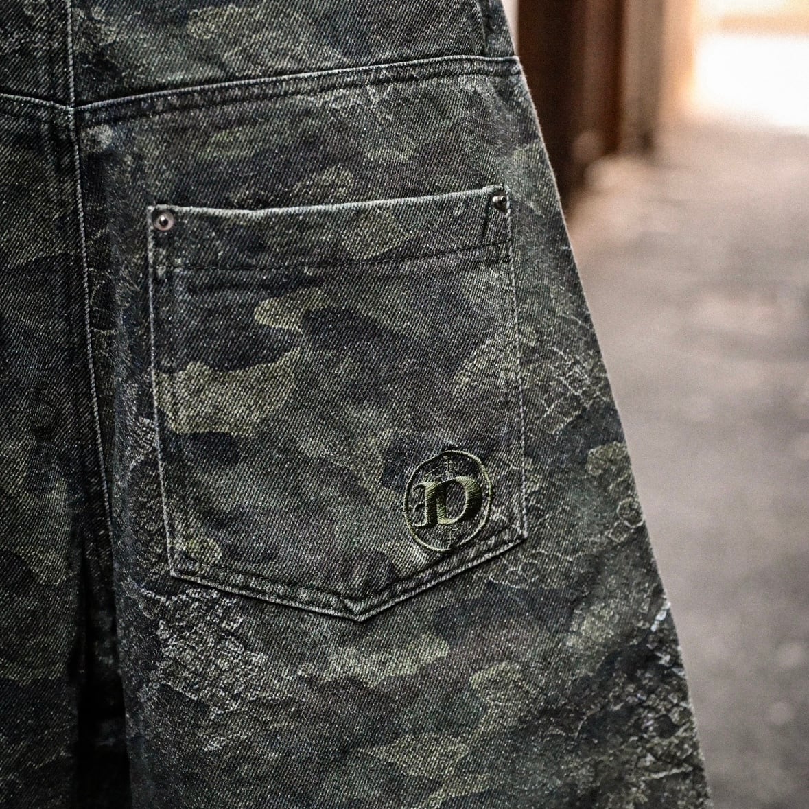 DEADROCK LOGO WASHED CAMO BAGGY PANTS
